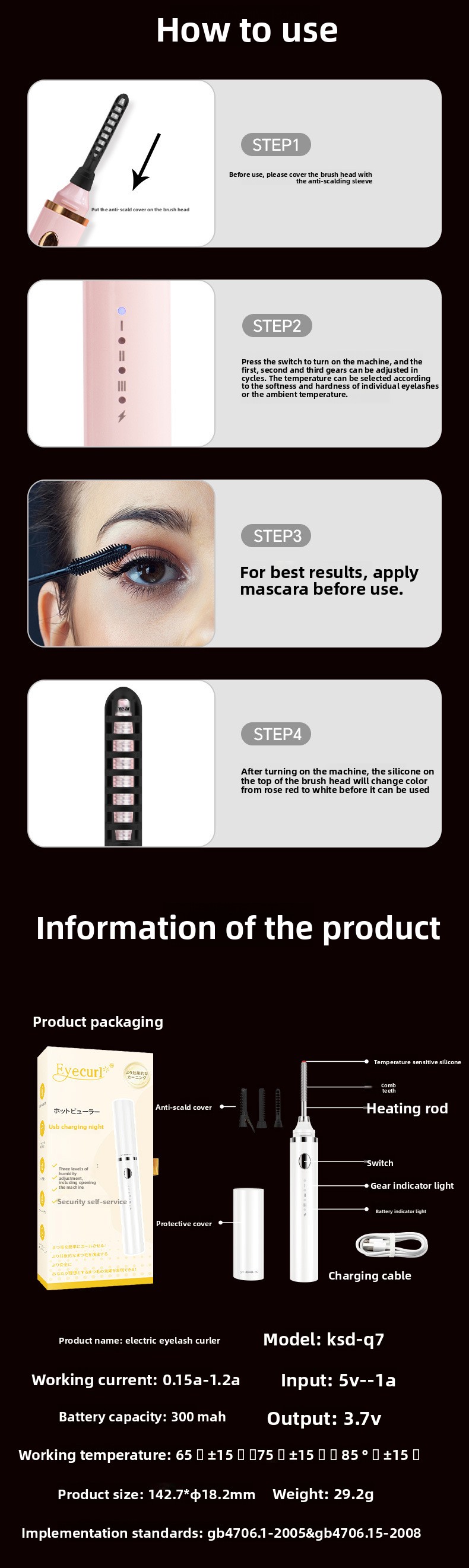 Safe Design: Gentle heating element prevents burns or damage to lashes.