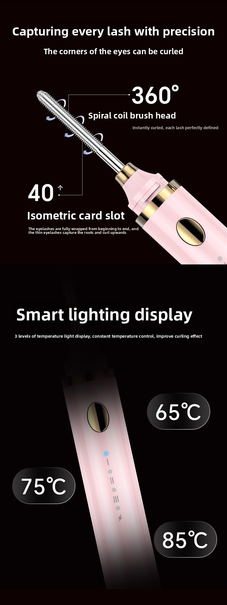 Quick Styling: Heats up quickly to curl lashes in seconds for long-lasting results.