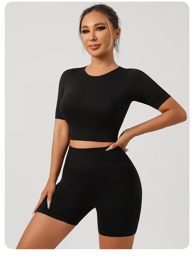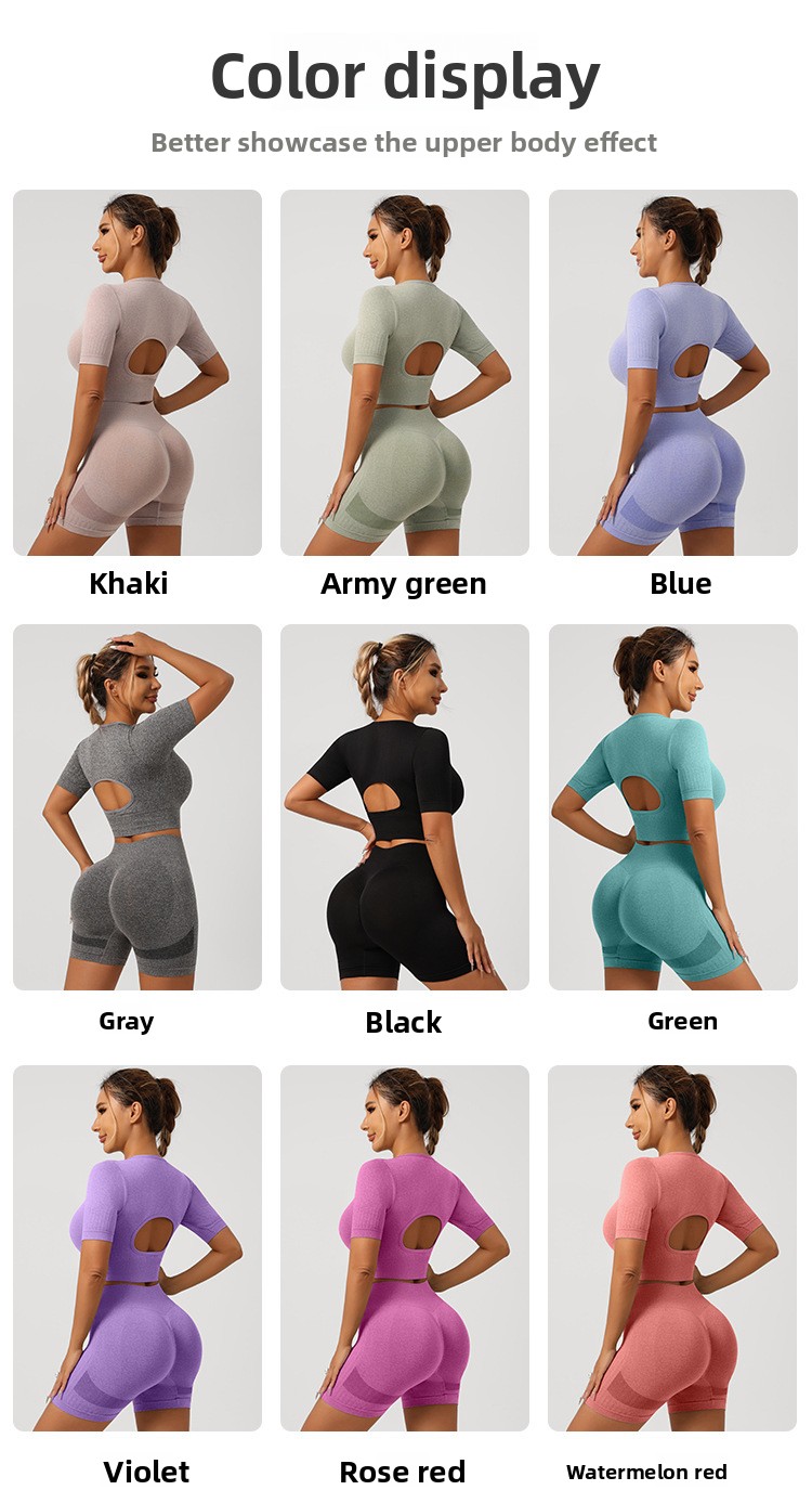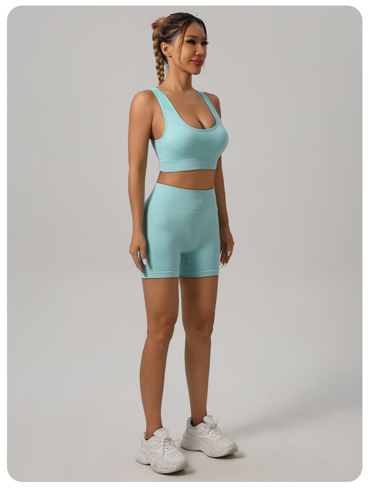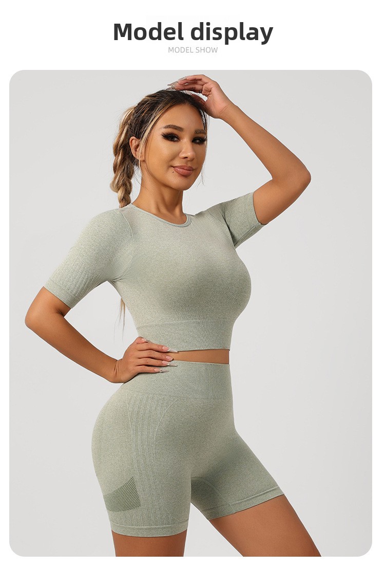 Styles: Sports bra with shorts, sports bra with long pants, short sleeve top with pants, short sleeve top with shorts