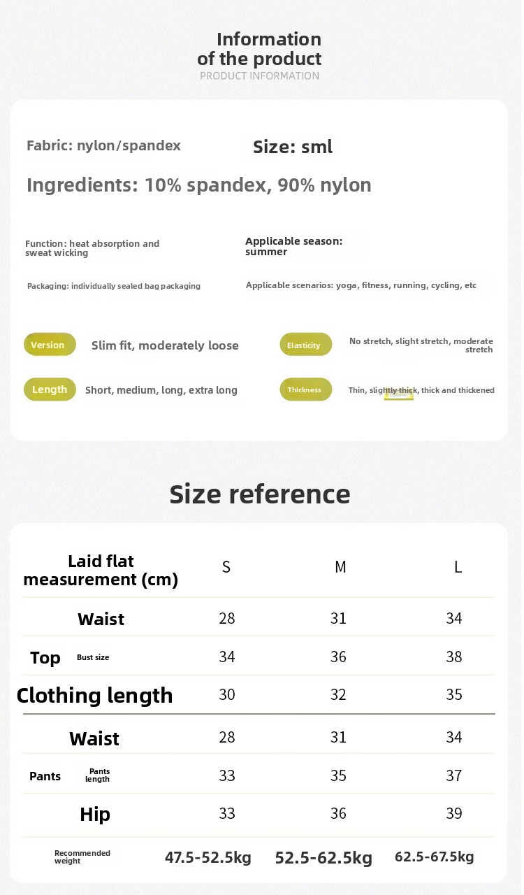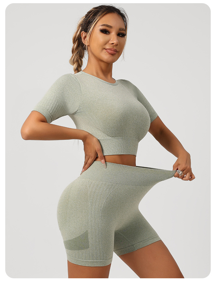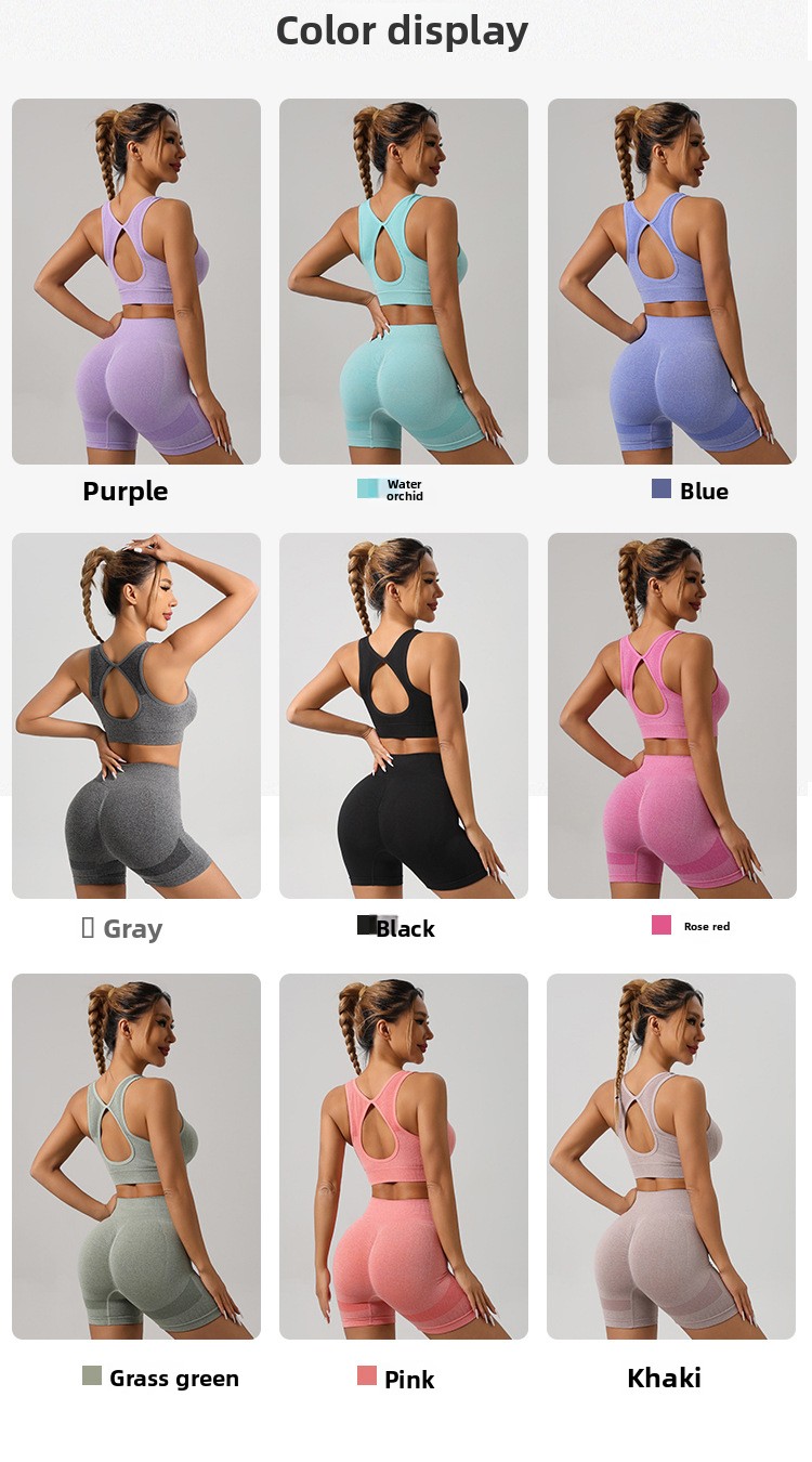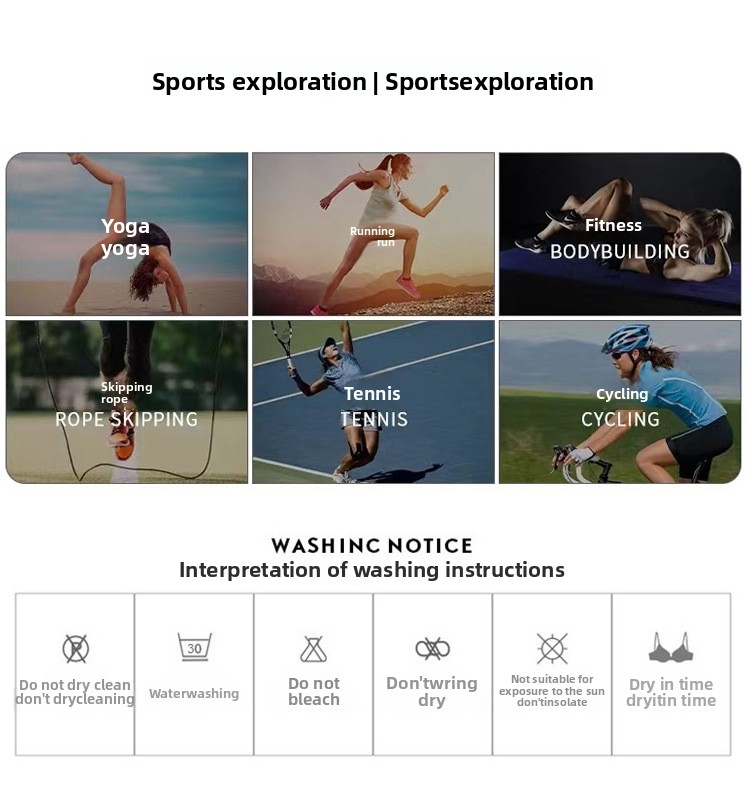 Styles: Sports bra with shorts, sports bra with long pants, short sleeve top with pants, short sleeve top with shorts